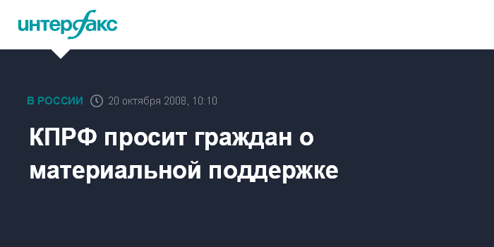 Москва. 20 октября. INTERFAX.RU - В Коммунистической партии РФ заявляют, что предвидели мировой финансовый кризис, и обращаются к гражданам России с просьбой материально поддержать партию в реализации ее планов.