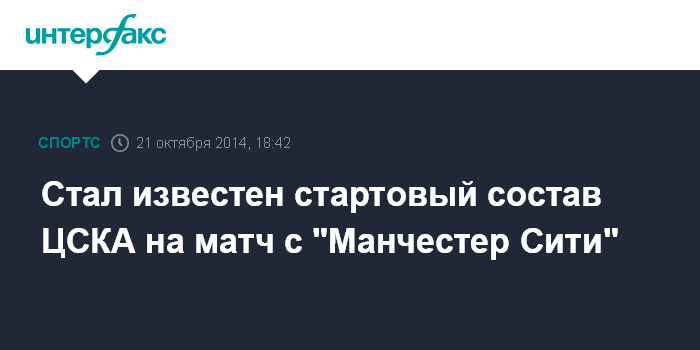 Москва. 21 октября. INTERFAX.RU - Главный тренер московского ЦСКА Леонид Слуцкий определился со стартовым составом на матч Лиги чемпионов против "Манчестер Сити".