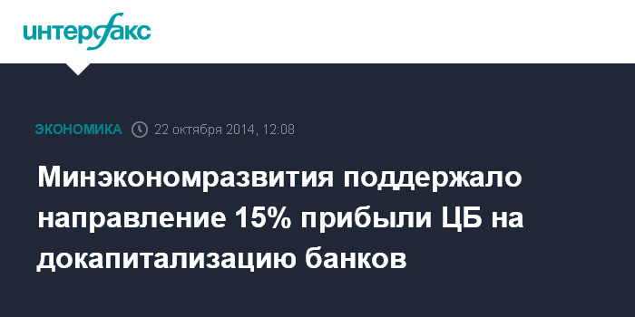 Минэкономразвития поддержало направление 15% прибыли ЦБ на докапитализацию банков