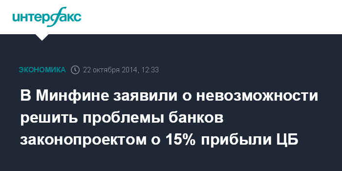 В Минфине заявили о невозможности решить проблемы банков законопроектом о 15% прибыли ЦБ