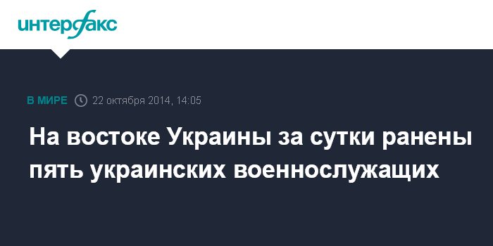 Москва. 22 октября. INTERFAX.RU - За минувшие сутки в зоне силовой операции ранены пятеро украинских военнослужащих, сообщил представитель Совета нацбезопасности и обороны Украины (СНБО) Андрей Лысенко.