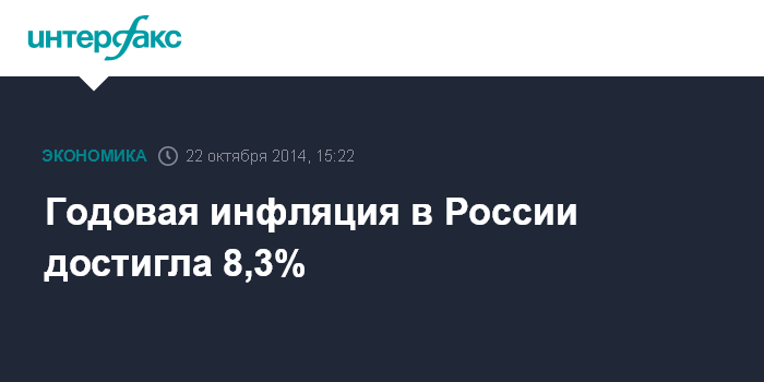 Москва. 22 октября. INTERFAX.RU - Инфляция в РФ за неделю с 14 по 20 октября составила 0,3%, сообщил в среду Росстат. Таким образом в годовом выражении она достигла 8,3%.
