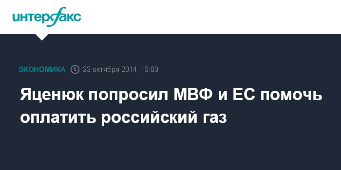 Москва. 23 октября. INTERFAX.RU - Украина накопила на счетах $3,1 млрд для оплаты поставок российского газа, но этого недостаточно, поэтому страна рассчитывает на финансовую помощь Международного валютного фонда и Европейского союза.
