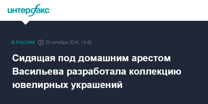 Москва. 23 октября. INTERFAX.RU - Фигурантка дела "Оборонсервиса" Евгения Васильева, находящаяся под домашним арестом по обвинению в мошенничестве, разработала собственную коллекцию украшений.