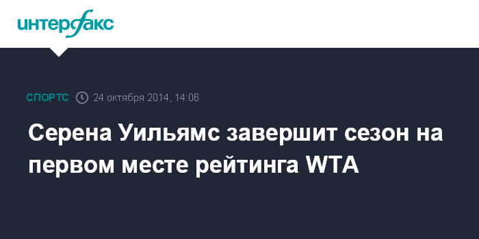 Москва. 24 октября. INTERFAX.RU - Американская теннисистка Серена Уильямс завершит сезон в качестве лидера рейтинга WTA.