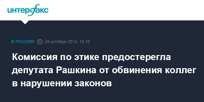 Москва. 24 октября. INTERFAX.RU - Думская комиссия по депутатской этике поставила на вид члену фракции КПРФ Валерию Рашкину его заявления, сделанные на пленарном заседании палаты в сентябре, сообщил замруководителя комиссии Андрей Андреев (фракция КПРФ).