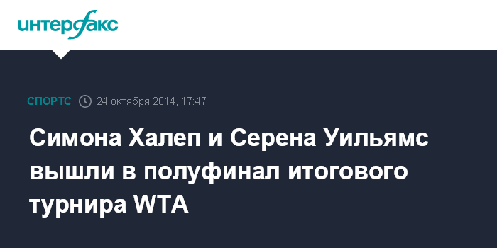 Москва. 24 октября. INTERFAX.RU - Первая ракетка мира Серена Уильямс из США и румынка Симона Халеп вышли в полуфинал итогового чемпионата WTA в Сингапуре из "Красной группы".