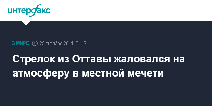 Москва. 25 октября. INTERFAX.RU - Человек, застреливший солдата в центре столицы Канады Оттавы и штурмовавший парламент страны, жаловался на то, что в местной мечети царили слишком либеральные порядки, сообщило в субботу агентство Associated Press со ссылкой на лидера общины мусульман Британской Колумбии Азима Рашида.