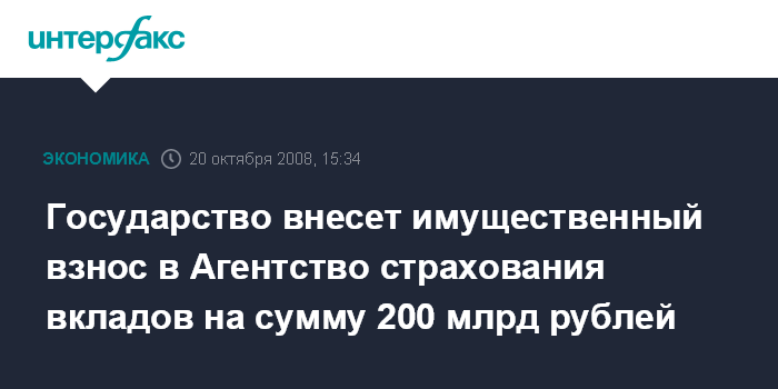 "В связи с этим я прошу внести поправки в бюджет 2008 года о выделении дополнительно 200 млрд рублей в виде имущественного взноса в Агентство страхования вкладов", - сказал премьер.
