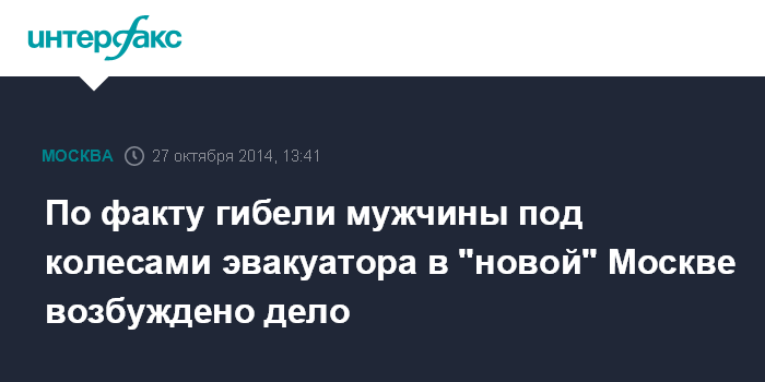 Москва. 27 октября. INTERFAX.RU - Уголовное дело возбуждено по факту ДТП в "новой" Москве, где пассажир эвакуируемого автомобиля погиб под колесами эвакуатора, сообщили в понедельник "Интерфаксу" в пресс-службе ГУ МВД по Москве.