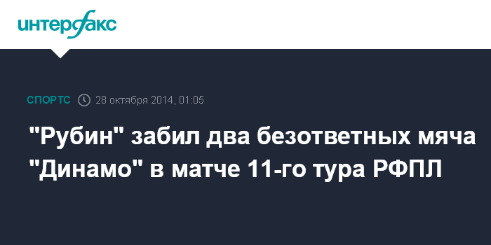 Москва. 28 октября. INTERFAX.RU - В заключительном матче 11-го тура Российской футбольной премьер-лиги (РФПЛ) московское "Динамо" на поле подмосковной "Арены Химки" уступило казанскому "Рубину".
