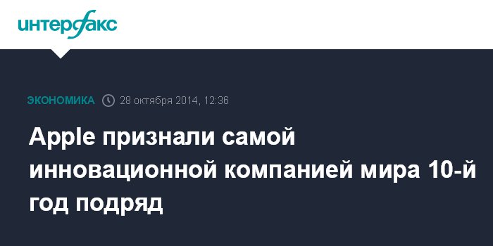 Москва. 28 октября. INTERFAX.RU - Компании из отрасли высоких технологий и коммуникаций в 2014 году снова заняли первые позиции в рейтинге 50 самых инновационных компаний The Boston Consulting Group (BCG). Бессменным лидером в области инноваций начиная с 2005 года, когда BCG впервые представила данный рэнкинг, является Apple.