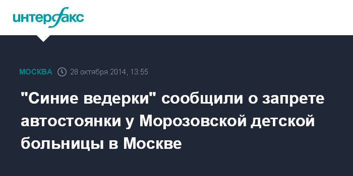Москва. 28 октября. INTERFAX.RU - "Общество синих ведерок" (ОСВ) бьет тревогу из-за запрета автостоянки возле здания Морозовской детской больницы на Мытной улице в Москве.