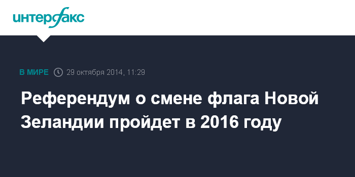 Москва. 29 октября. INTERFAX.RU - Новая Зеландия в 2016 году проведет референдум о смене государственного флага, сообщил премьер-министр страны Джон Кей.