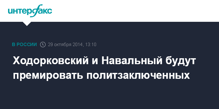 Москва. 29 октября. INTERFAX.RU - Экс-руководитель НК "ЮКОС" Михаил Ходорковский и оппозиционер Алексей Навальный намерены учредить премии для людей, которые, по мнению правозащитников, незаконно подвергаются в России уголовному преследованию.