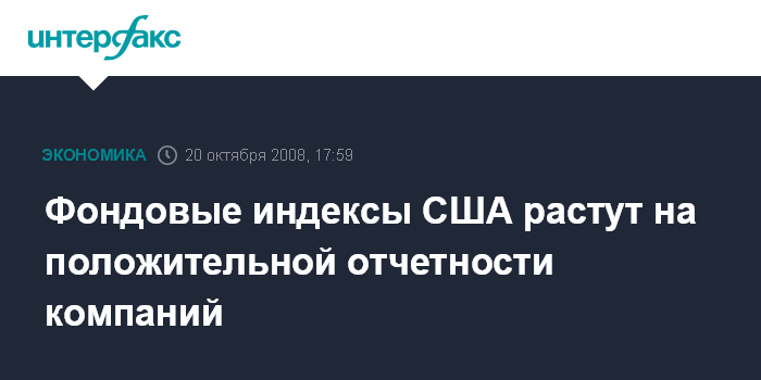 Нью-Йорк. 20 октября. INTERFAX.RU - Фондовые индексы США растут в понедельник на положительной отчетности компаний, сообщает агентство Bloomberg.