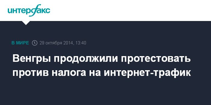 Москва. 29 октября. INTERFAX.RU - Новые массовые акции протеста против законопроекта о введении налога на интернет-трафик прошли в Венгрии, наиболее многочисленный митинг, в котором участвовали свыше 10 тыс. человек, состоялся в Будапеште, передает Deutsche Welle.