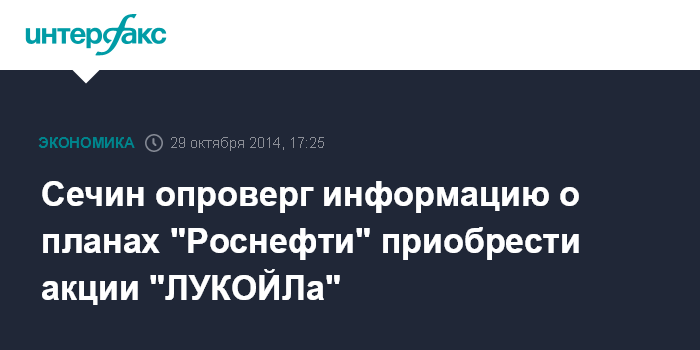 Сечин опроверг информацию о планах "Роснефти" приобрести акции "ЛУКОЙЛа"