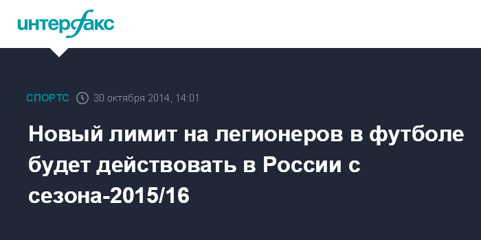 Новый лимит на легионеров в футболе будет действовать в России с сезона-2015/16