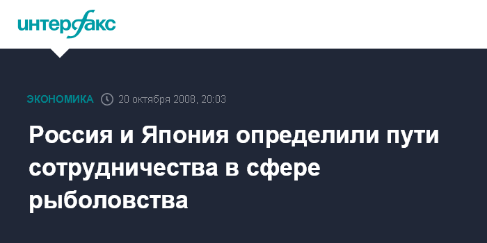 Москва. 20 октября. INTERFAX.RU - Россия и Япония определили пути сотрудничества в сфере рыболовстве на 2009 год.