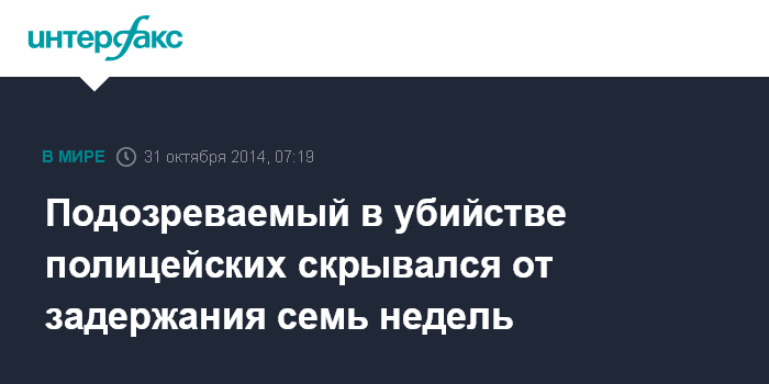 Москва. 31 октября. INTERFAX.RU - Полиция штата Пенсильвания задержала Эрика Фрейна подозреваемого в убийстве полицейского в сентябре этого года, сообщил в пятницу телеканал CNN.