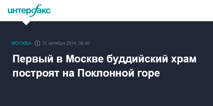 Москва. 31 октября. INTERFAX.RU - Первый на территории столицы буддийский храм будет построен на Поклонной горе, где уже есть культовые объекты нескольких других конфессий, сообщили "Интерфаксу" в департаменте межрегионального сотрудничества, национальной политики и связей с религиозными организациями в пятницу.