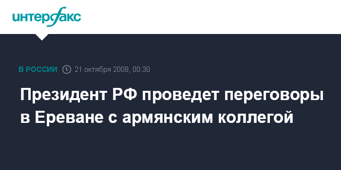 Президент РФ проведет переговоры в Ереване с армянским коллегой