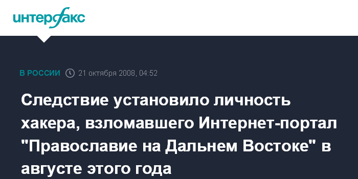 Следствие установило личность хакера, взломавшего Интернет-портал "Православие на Дальнем Востоке" в августе этого года