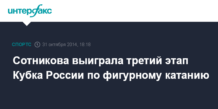 Москва. 31 октября. INTERFAX.RU - Олимпийская чемпионка-2014 Аделина Сотникова победила на на третьем этапе Кубка России по фигурному катанию в Сочи.