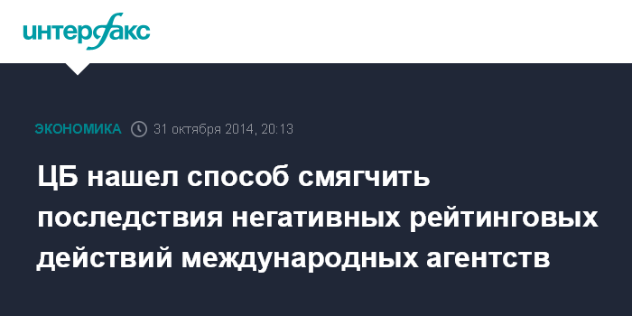 ЦБ нашел способ смягчить последствия негативных рейтинговых действий международных агентств