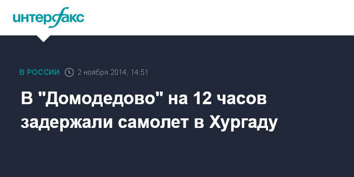 Москва. 2 ноября. INTERFAX.RU - Рейс авиакомпании Royal Flight по маршруту Москва-Хургада задерживается почти на 12 часов, сообщили корреспонденту портала "Интерфакс-Туризм" в справочной службе аэропорта "Домодедово" в воскресенье.