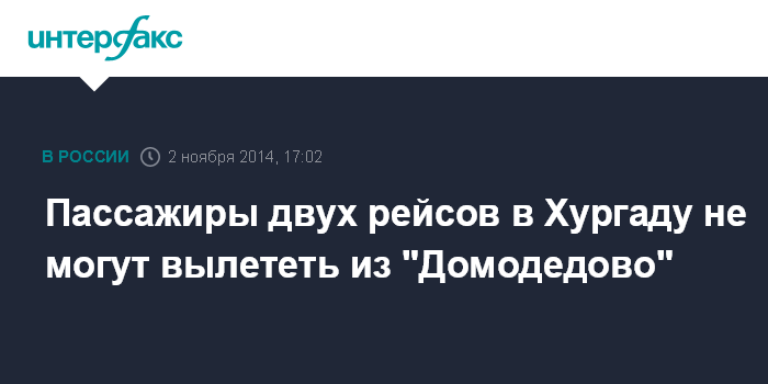 Москва. 2 ноября. INTERFAX.RU - Рейсы Москва-Хургада авиакомпании UTair и Royal Flight задерживаются более чем на 10 часов, сообщается в воскресенье на сайте аэропорта "Домодедово".