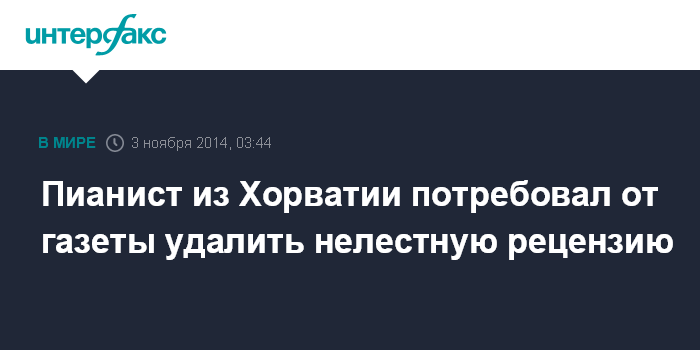 Пианист из Хорватии потребовал от газеты удалить нелестную рецензию