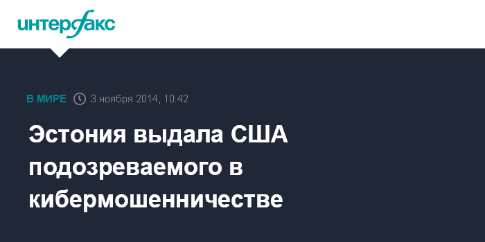 Москва. 3 ноября. INTERFAX.RU - Эстония выдала США русскоговорящего гражданина страны Владимира Чащина, которого прокуратура Южного округа Нью-Йорка считает главой группы кибермошенников, запустившей вредоносные программы примерно в 4 млн компьютеров более чем в 100 странах, передает BBC.