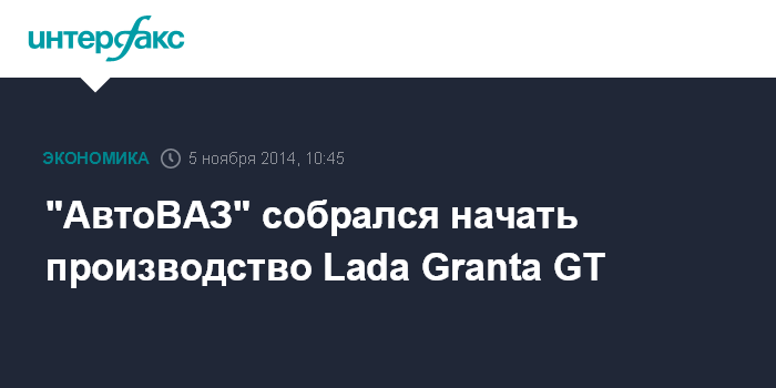 Москва. 5 ноября. INTERFAX.RU – "АвтоВАЗ" планирует начать производство нового "хэтчбека" Lada Granta GT на базе Lada Granta Liftback, сообщил "Интерфаксу" источник на предприятии во вторник.