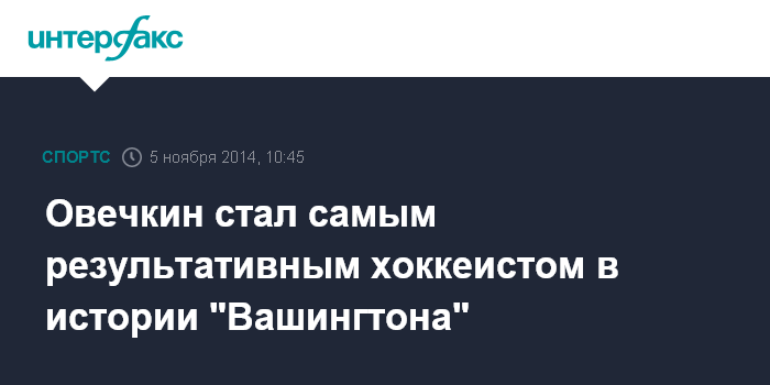 Москва. 5 ноября. INTERFAX.RU - Две результативные передачи, сделанные российским нападающим "Вашингтон Кэпиталз" Александром Овечкиным в домашнем матче с "Калгари Флеймз", вывели его на первое место по числу набранных очков в истории своей команды, сообщает официальный сайт Национальной хоккейной лиги (НХЛ).