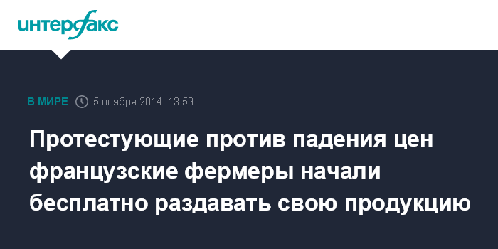 По сообщению французских СМИ, глава профсоюза FDSEA, организовавшего акцию, Жан-Мишель Гуаш, среди прочего, выразил недовольство "резким падением цен на зерновые, молоко и овощи, отчасти вызванным связанными с Россией санкциями".