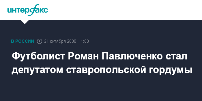 Москва. 21 октября. INTERFAX.RU - Известный российский футболист, нападающий сборной России Роман Павлюченко зарегистрирован депутатом городской думы Ставрополя пятого созыва.
