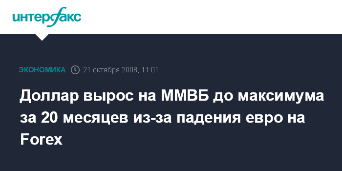 Доллар вырос на ММВБ до максимума за 20 месяцев из-за падения евро на Forex