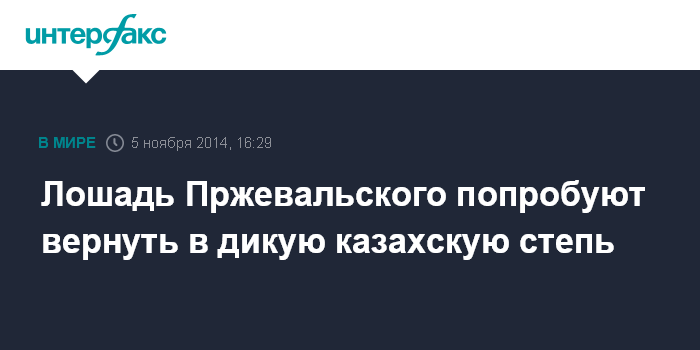 Москва. 5 ноября. INTERFAX.RU - Казахстанская ассоциация сохранения биоразнообразия разработала программу реинтродукции (возвращения в дикую природу) лошади Пржевальского, сообщила пресс-служба Минсельхоза республики.