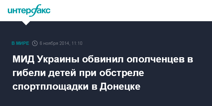 МИД Украины обвинил ополченцев в гибели детей при обстреле спортплощадки в Донецке