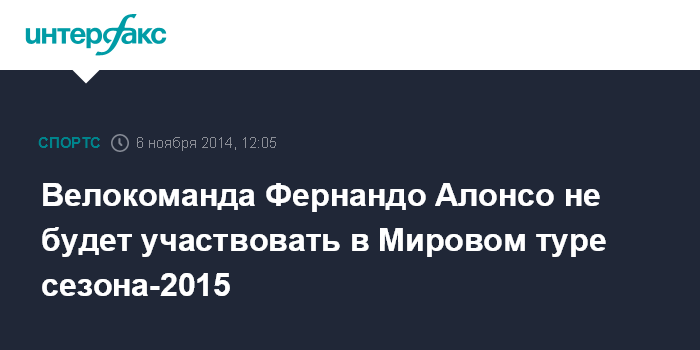 Велокоманда Фернандо Алонсо не будет участвовать в Мировом туре сезона-2015