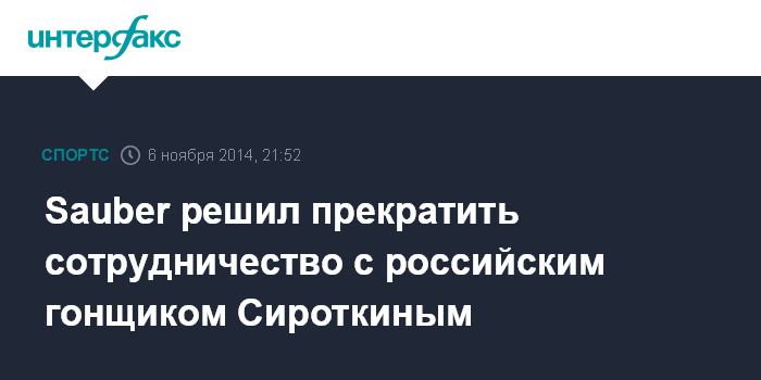 Sauber решил прекратить сотрудничество с российским гонщиком Сироткиным