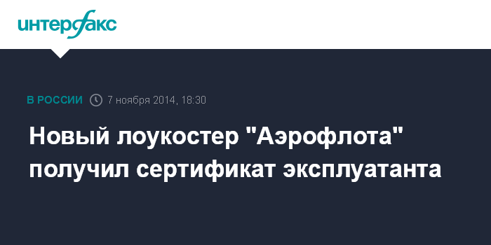 Новый лоукостер "Аэрофлота" получил сертификат эксплуатанта