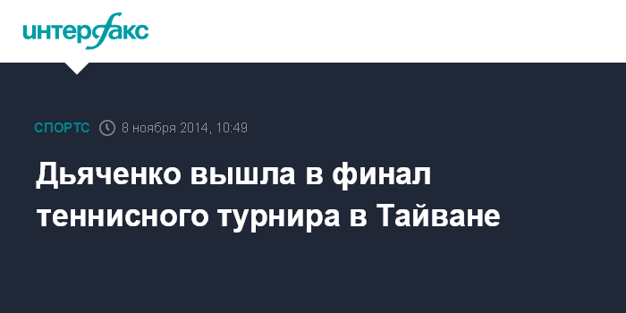 Москва. 8 ноября. INTERFAX.RU - В полуфинале теннисного турнира в Тайване россиянка Виталия Дьяченко переиграла Ану Богдан из Румынии - 6:4, 3:6, 6:3.