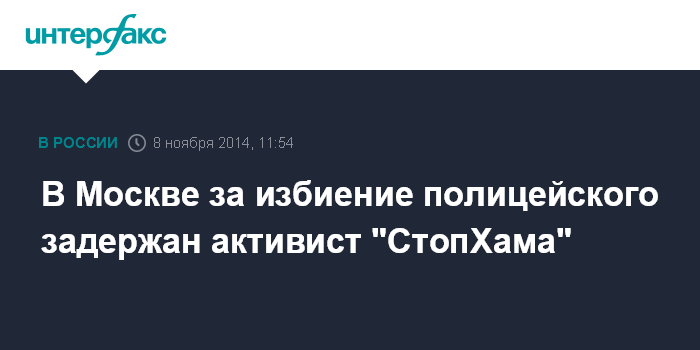 В Москве за избиение полицейского задержан активист "СтопХама"