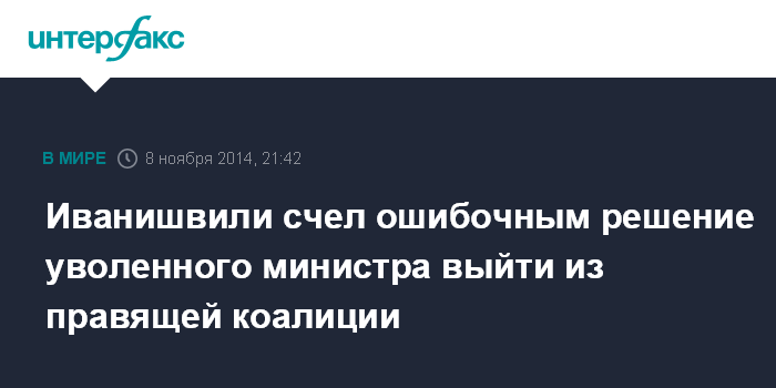 Иванишвили счел ошибочным решение уволенного министра выйти из правящей коалиции