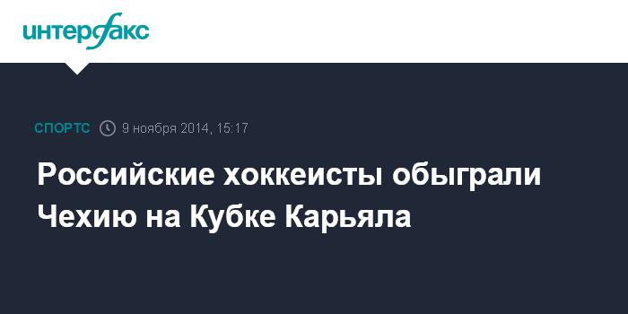 Москва. 9 ноября. INTERFAX.RU - Сборная России по хоккею со счетом 4:2 обыграла команду Чехии в заключительном матче Кубка Карьяла.