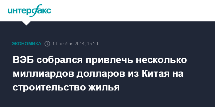 ВЭБ собрался привлечь несколько миллиардов долларов из Китая на строительство жилья