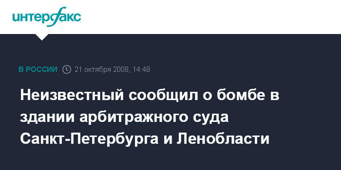 Hеизвестный сообщил о бомбе в здании арбитражного суда Санкт-Петербурга и Ленобласти